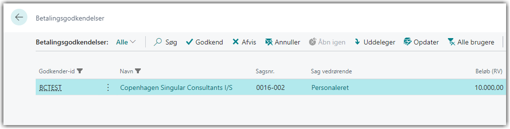 Betalingsanmodninger godkendes ved at åbne vinduet Betalingsgodkendelser: