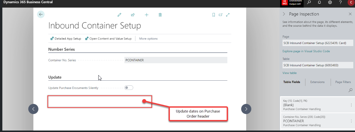 Bug | Issues with updating dates on Purchase orders from the container. |